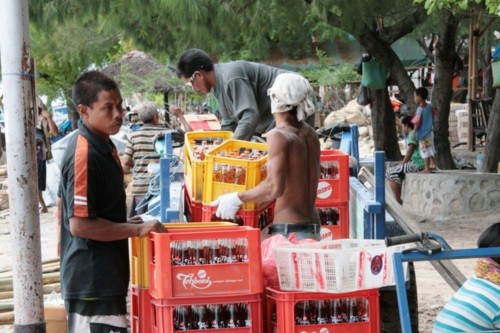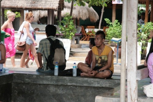 A 9h30, nous avons acheté nos billets et attendu que suffisamment de places, une vingtaine, soient vendues pour embarquer, ce qui peut durer 10 comme 45 minutes. Le port de GT se compose autant de livreurs de marchandises, que de travailleurs Sasak, que d’indonésiens venant passer quelques jours sur les îles ou leur lune de miel (les honeymooners), que de touristes rejoignant Gili Meno ou Gili Air, Bali (ex : Pendagbai, Benoa) ou Lombok. Le bateau est plein lorsque nous partons pour le magnifique pays Sasak vers 10h30.