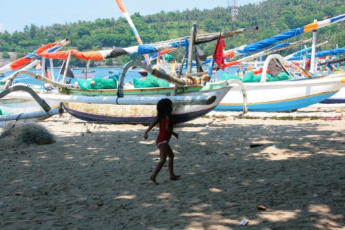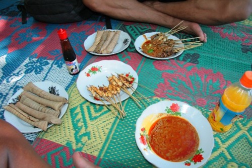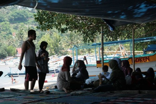Bangsal, Telokodek, Ti Nara, Mentigi, Pandanan, Nimpa, Malimpu, Setangi… nous dépassons Mangsit puis nous arrêtons déjeuner sur une plage après Senggigi, station balnéaire de Lombok.