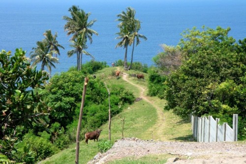 C’est parti pour un Bangal-Mataram d’un peu moins de 50 km par les cotes et, dès les premiers kilomètres, je suis époustouflée… L’île est à peine développée, les plages de sables jaunes sont presque encore vierges, les cotes déchiquetées triomphent sur un océan aux dix bleus, la nature est plus luxuriante que tout ce que j’ai vu jusqu’à présent, c’est splendide.