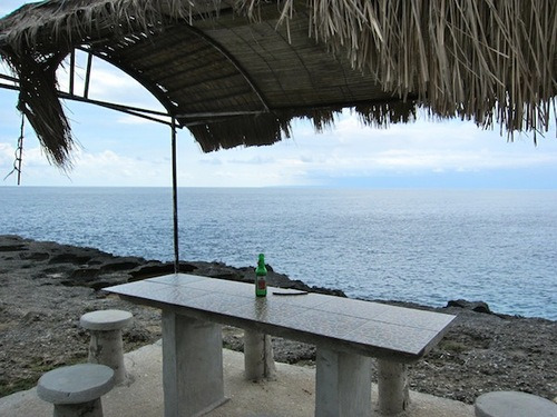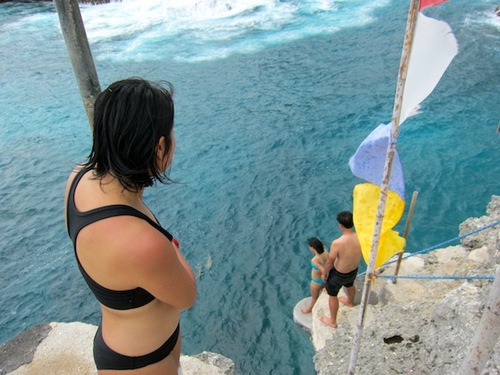 Au bout du chemin, il y a le Blue Lagoon Cliff Jumping, Made m’y attend déjà. Une japonaise est au rocher des 7 mètres pour sauter dans le lagon mais, visiblement, ça fait un moment que tout le monde attend qu’elle saute… je la regarde, amusée et me demande pourquoi les gens s’imposent tant de pression. Si cela génère trop de peurs chez toi, ne sautes pas ma cocotte ! Sur le terrain de Jumping point, il y des sortes de cratères au sol, c’est assez bizarre.