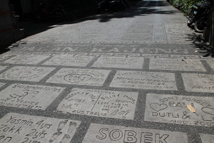 Sous vos pas, ses pavés sont incrustés de citations, de dédicaces de voyageurs, de noms d’hôtels, de restaurants et messages divers. Tout au long de cette ruelle calme, des échoppes et homestay vous mèneront à un sentier en pente qui vous perdra dans les rizières d’Ubud en direction du fameux restaurant « Organic » à 20 minutes de marche du centre d’Ubud.